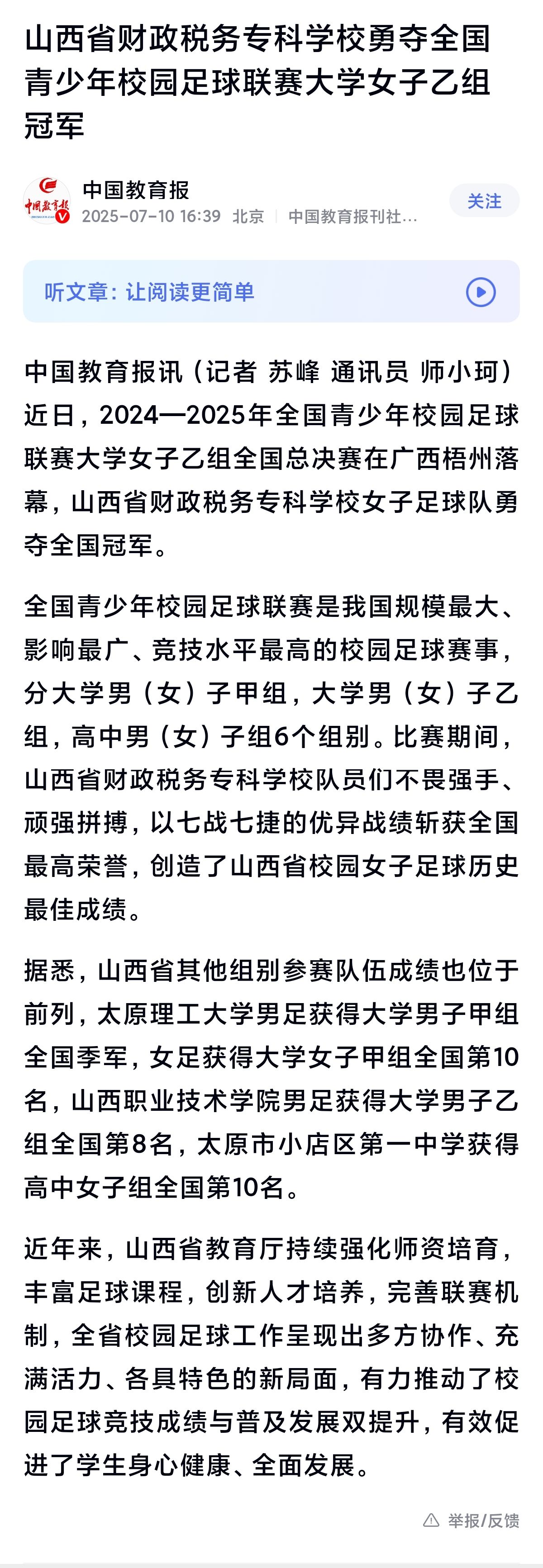 中国教育报:bat365正版唯一官网勇夺全国青少年校园足球联赛大学女子乙组冠军