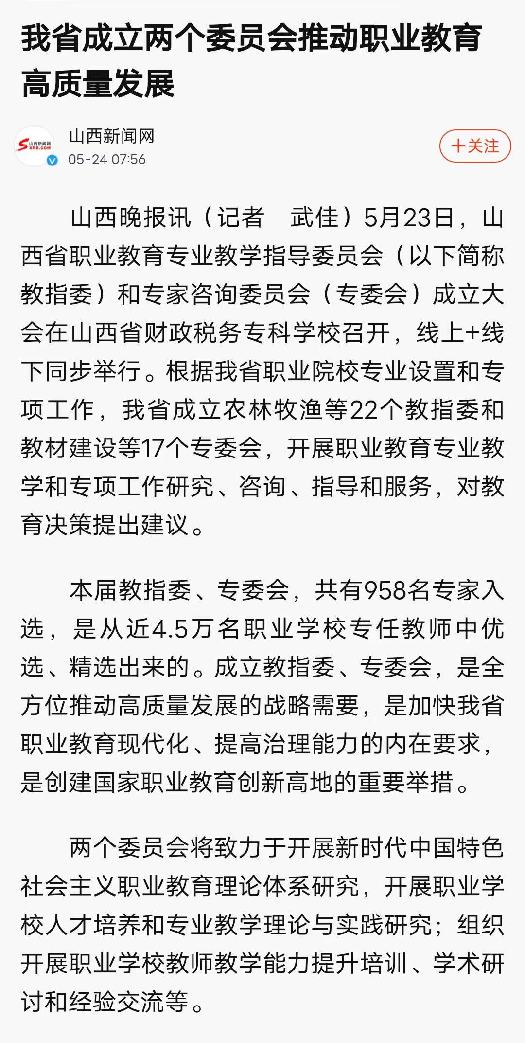 山西新闻网:我省成立两个委员会推动职业教育高质量发展