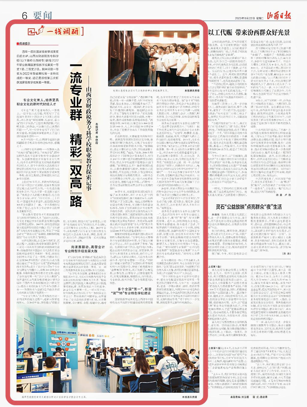《山西日报》第06版“要闻”以《一流专业群 精彩“双高”路》为题,对bat365国家级教学成果奖进行专题报道