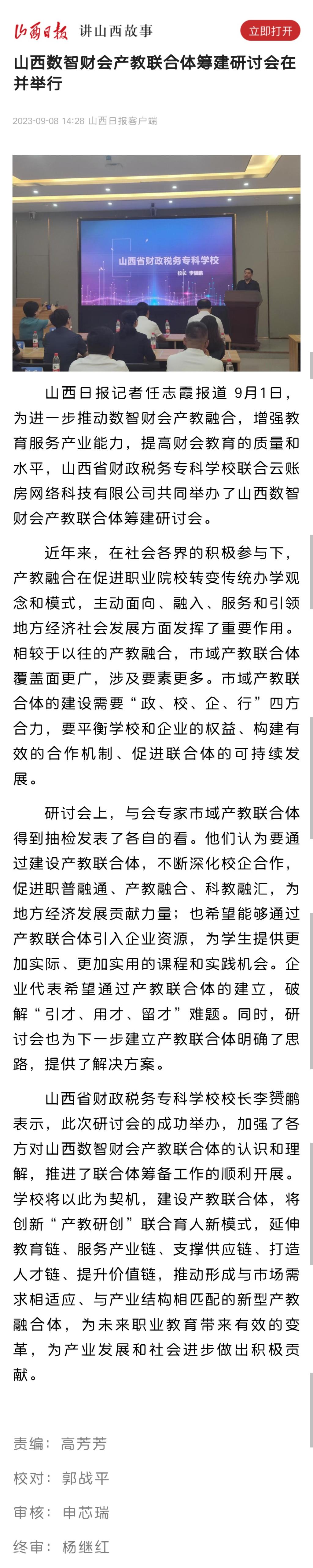 山西日报:山西数智财会产教联合体筹建研讨会在并举行
