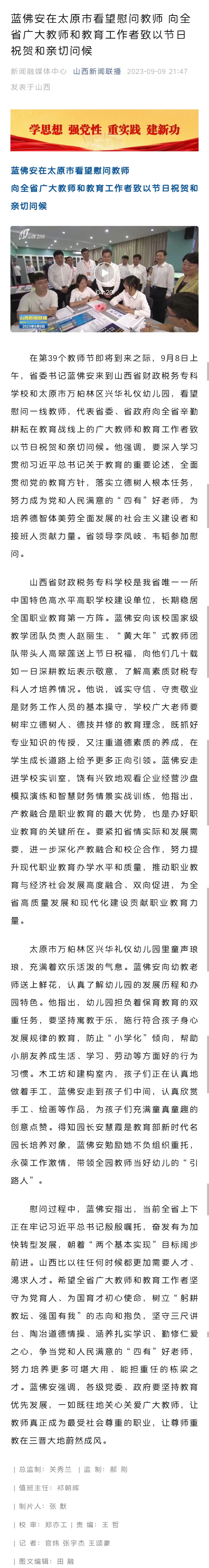 山西新闻联播:蓝佛安在太原市看望慰问教师 向全省广大教师和教育工作者致以节日祝贺和亲切问候