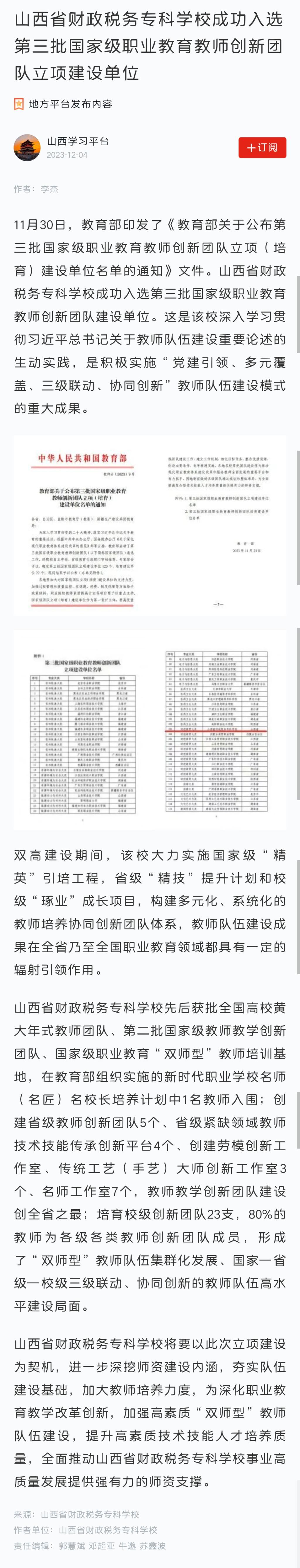 学习强国:bat365成功入选第三批国家级职业教育教师创新团队立项建设单位