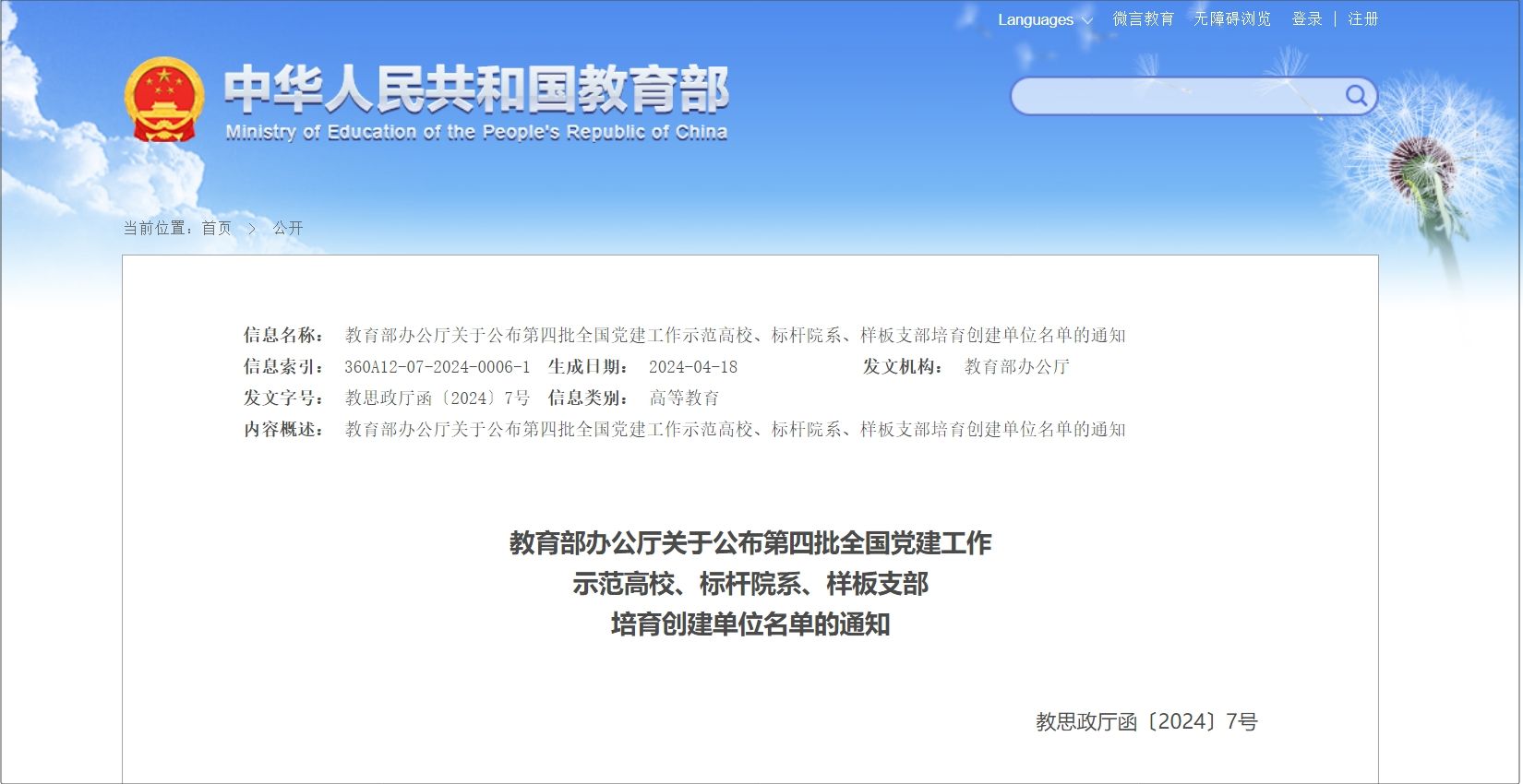 近日,教育部办公厅发布《关于公布第四批全国党建工作示范高校、标杆院系、样板支部培育创建单位名单的通知》(教思政厅函〔2024〕7号),bat365会计学院教师党支部入选第四批“全国党建工作样板支部”培育创建单位。