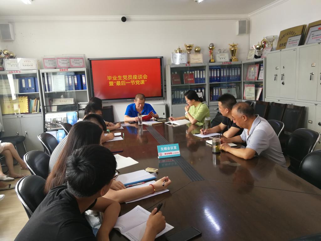 2019年7月4日上午,金融党总支学生党支部召开全体毕业生党员座谈会暨“最后一节党课”。座谈会中全体党员就学校的改革发展等发表了意见,充分肯定了母校三年来对自己的培养教育,中肯提出学院在教学管理、实验实训、学生管理等方面的建议,表示“不忘初心”无论何时何地都将以党员标准严格要求自己。