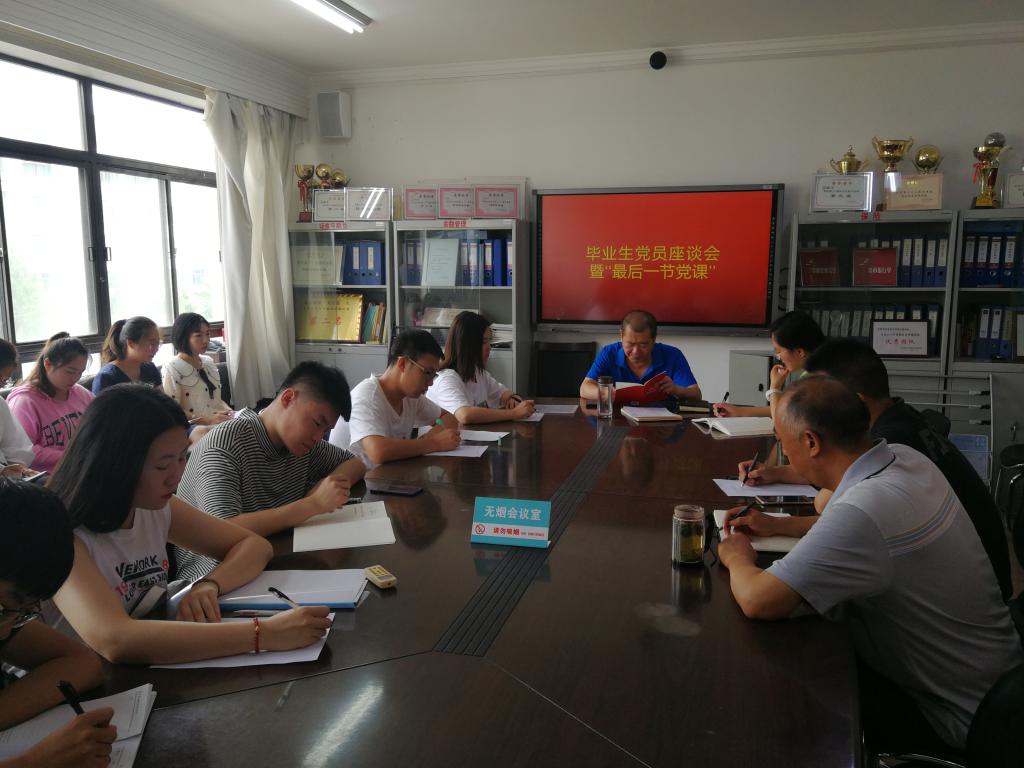 在“最后一节党课”中党支部书记张文组织党员认真学习了《中国共产党党员教育管理工作条例》有关内容。最后党总支书记王英就如何做政治坚定的合格党员、如何做人做事、如何学习进步、如何积极健康向上等提出了四点要求和希望。