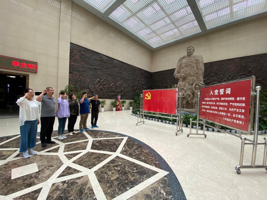 在晋绥边区革命纪念馆,同志们详细了解了晋绥革命根据地的形成过程、八路军在晋绥的战斗轨迹以及晋绥革命热土上涌现出的众多英烈英雄事迹等,心怀对革命先烈的崇敬之情,参观结束后大家在抗战浮雕前,面向党旗进行庄严宣誓。
