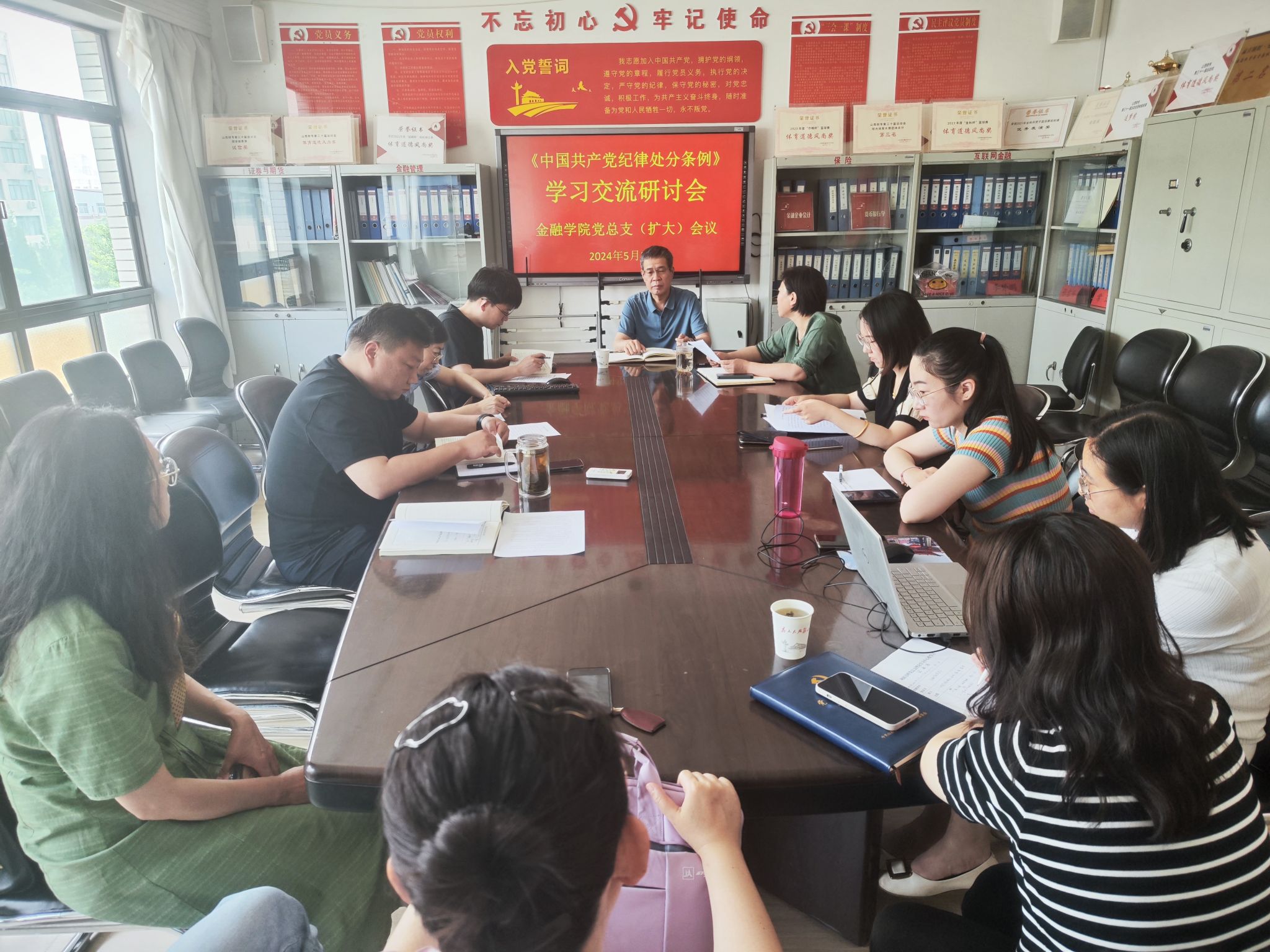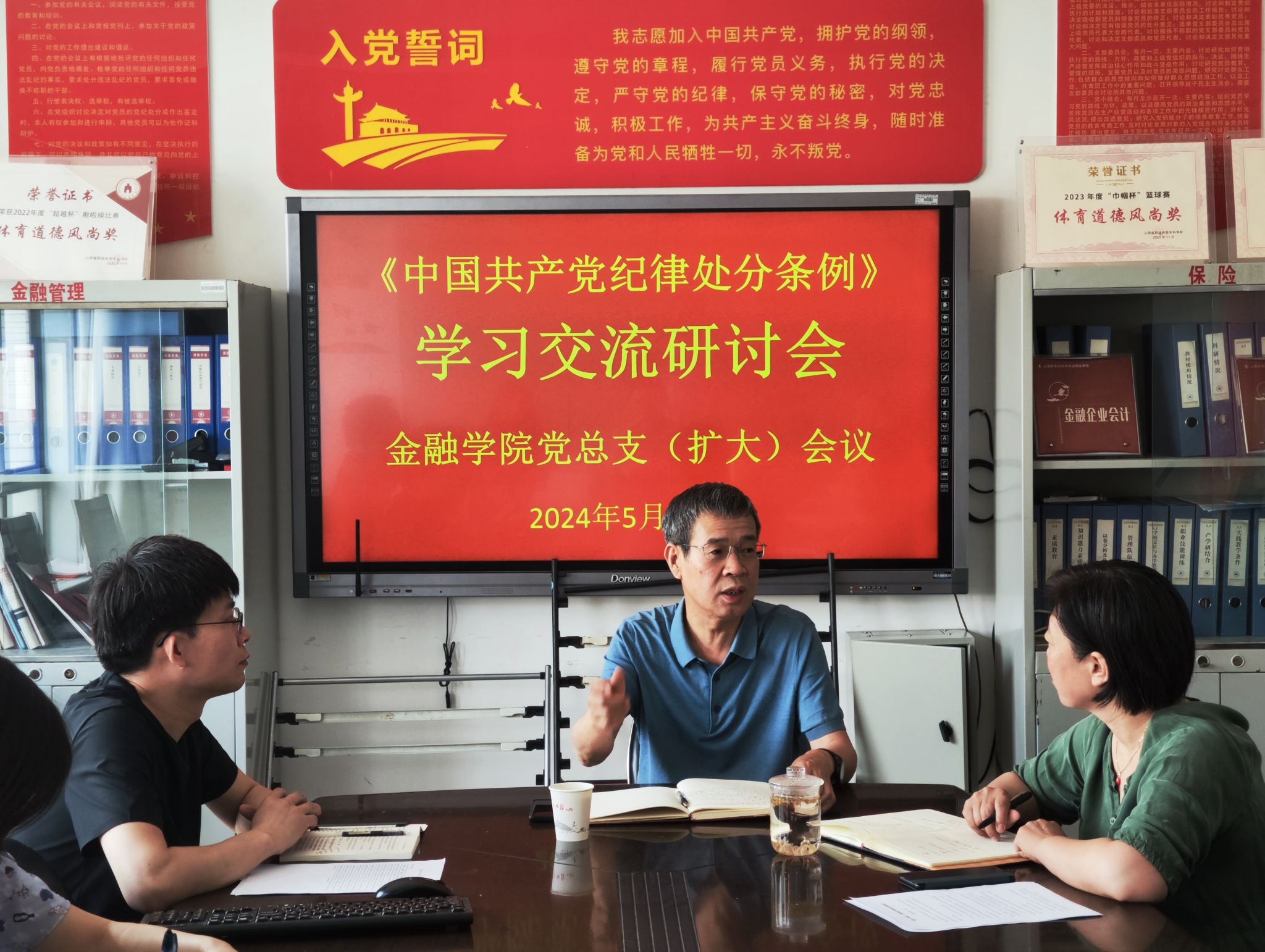 5月21日上午,金融学院党总支理论学习中心组召开《中国共产党纪律处分条例》专题学习扩大会,班子成员、教研室主任、各专业负责人参加学习会。校党委委员、副校长冯东元及联络秘书唐慧君列席会议。党总支书记常江主持会议。