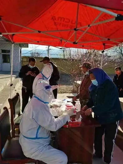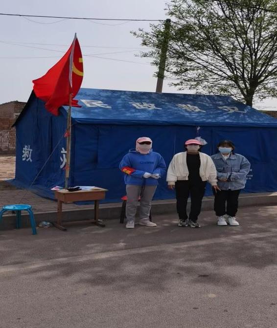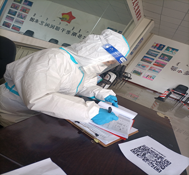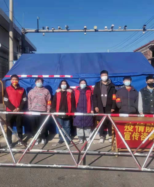 21级金融服务与管理三班徐国蕾,在家乡所在地朔州市应县北楼口村辅助医护人员入户进行信息采集和核酸检测,全天候在卡点值班,进行电话核查、防疫宣传。