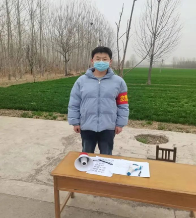21级证券实务班王众在稷山县太阳乡参加抗疫志愿行动,服务村民,展示青年的责任与担当。