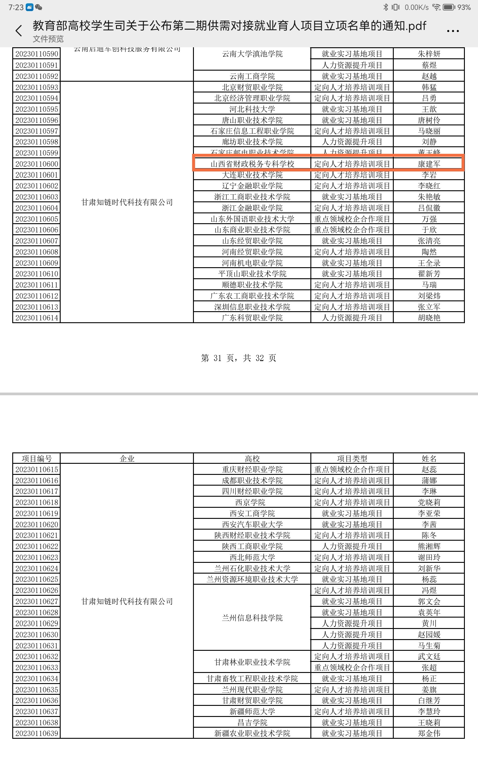 2023年4月6日,教育部高校学生司公布第二期供需对接就业育人项目立项名单,