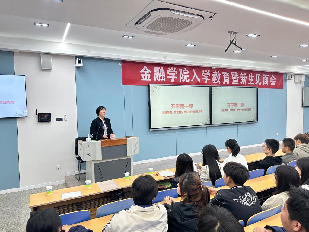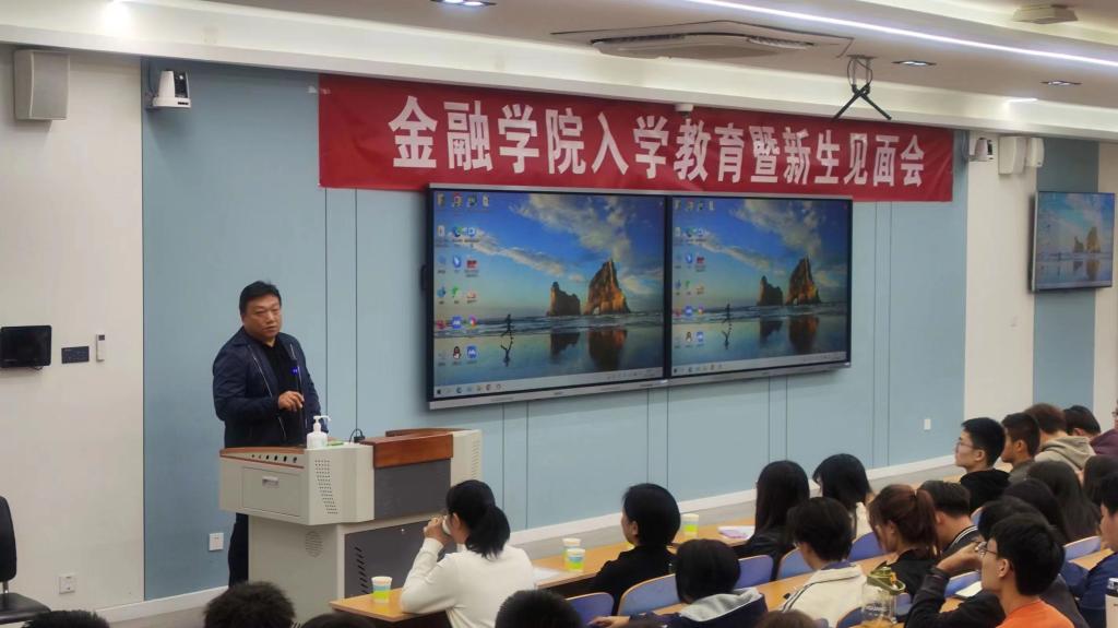 会上,党总支书记常江代表学院欢迎新生加入金融学院大家庭,做了“心怀梦想、笃定前行,做人生的长期投资者”主题讲话,从“听党话、跟党走”“认真做人”“潜心求学”“做好规划、面向未来”等方面勉励大家要躬耕课堂,投身社会,努力做新时代的金融人。