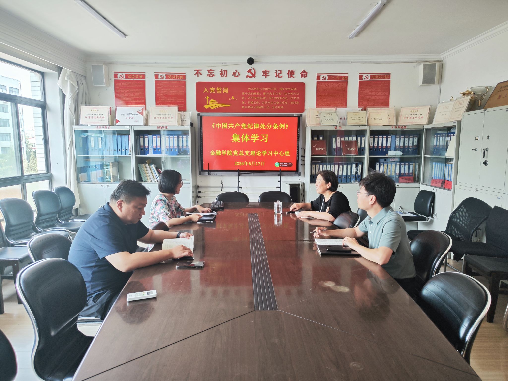 6月17日下午,金融学院党总支理论学习中心组召开《中国共产党纪律处分条例》专题学习会,党总支领导班子成员参加会议,党总支书记常江主持会议。