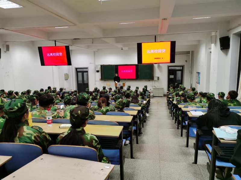 学院在军训期间给大一新生进行思想政治教育和安全教育,辅导员做防诈骗讲座,让同学们了解校园贷的危害,使同学们远离网络诈骗。
