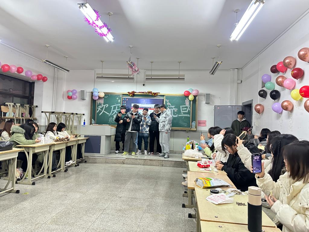 12月24日晚上七点,金融学院以各班为单位举办了“欢声笑语庆元旦,载歌载舞迎新年”元旦文艺汇演暨班级茶话会。金融学院党总支书记常江、行政负责人宋陆军、党总支副书记常大毅、教学副院长邓雪莉、实训负责人王波以及各班辅导员参加晚会,与学生共庆新年。