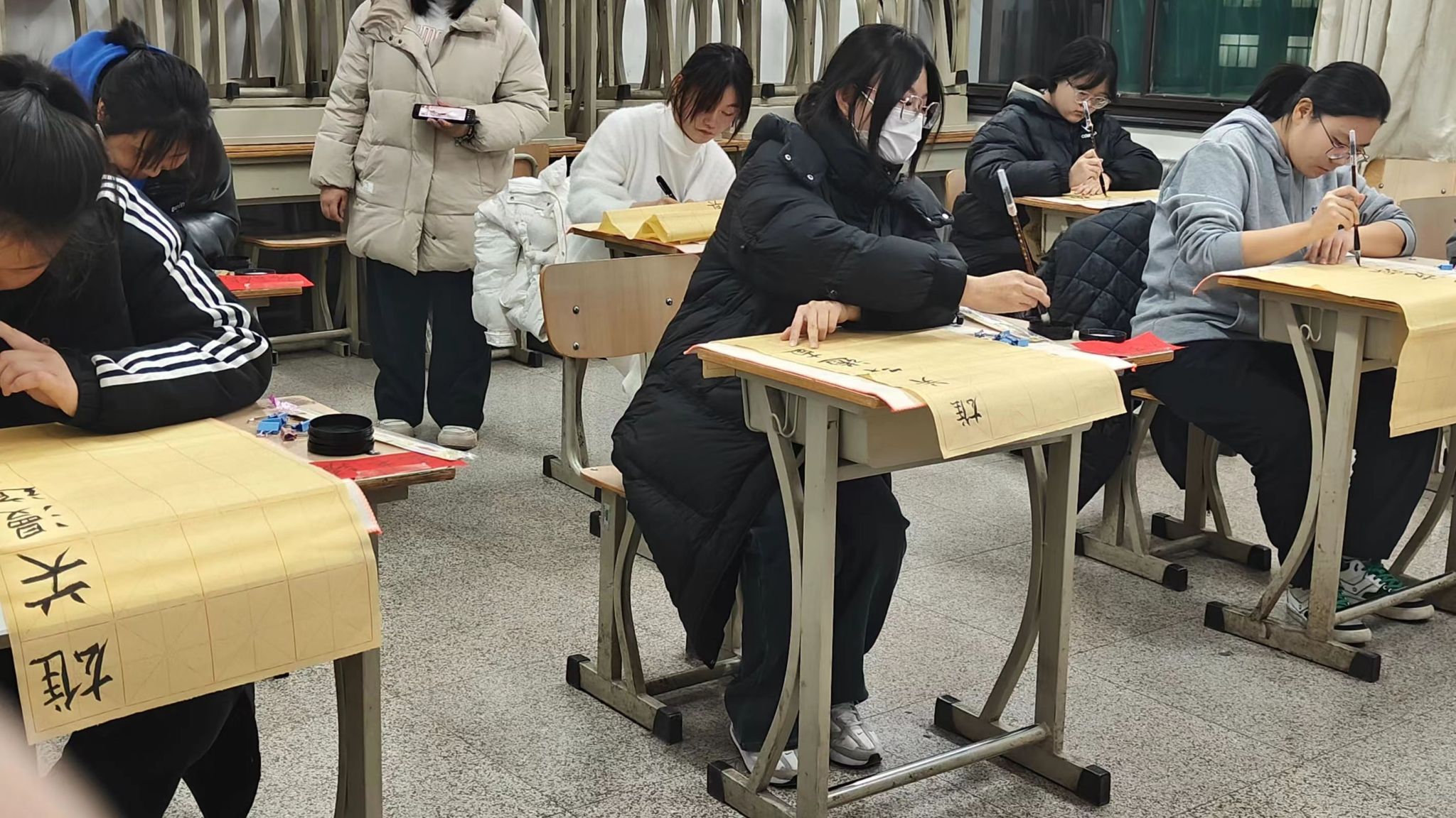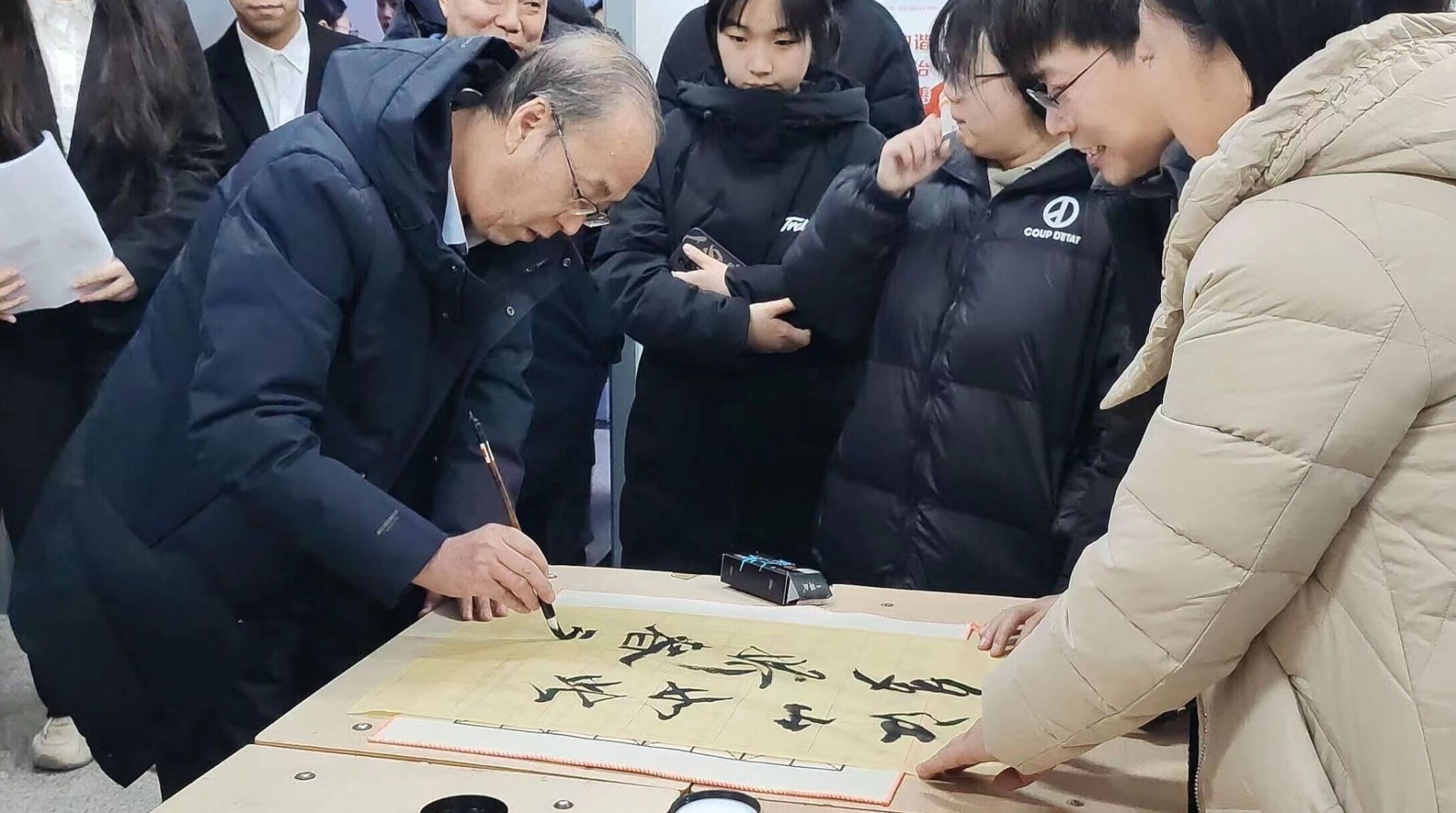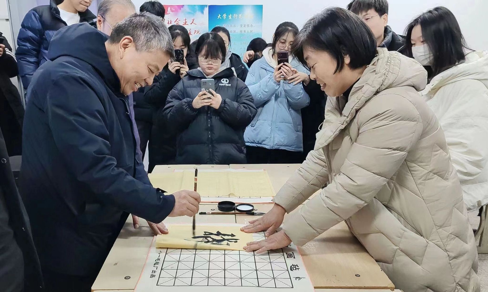 副校长李富堂老师和院长董国富老师对获奖作品做了精彩点评,强调当代青年要继承和弘扬老一辈革命精神和豪迈情怀,赓续中华文脉,同学们要以笔为剑,以纸为盾,继承和发扬革命传统,厚植中华深厚的文化遗产。董院长更强调书写汉字的法规与法度,勉励同学们在学习书法的过程中提升文化底蕴,蕴藏书法情怀,感受书法之美,静思文化哲理。