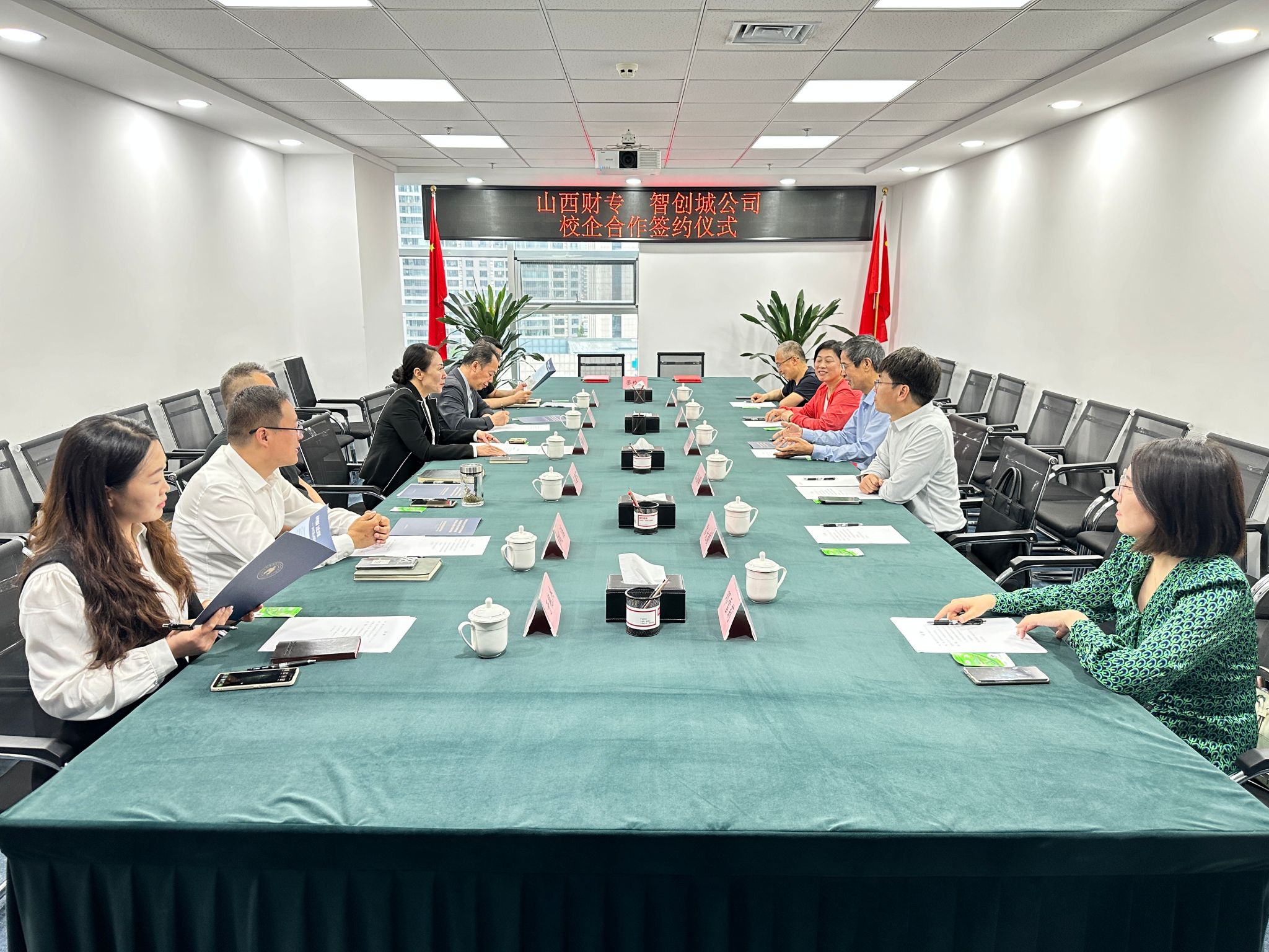 随后,双方就校企合作以及提升就业机会等问题进行校企合作交流。山西智创城科技发展有限公司董事长傅冉介绍了智创城的发展战略和规划布局,宫涛副总经理就产教融合的具体方式提出了创新性的观点,冯东元副校长结合bat365实际指出双方可以在大学生实习、创新创业等方面进行深度合作。双方达成一致,将立足校企实际,以智创驱动,增加岗位数量,提升岗位质量,双策略发力,开辟就业市场的新格局,开启就业新局面,实现高校毕业生和企业“双向奔赴”。会后冯东元副校长和宫涛副总经理代表校企双方签订了校企合作协议。