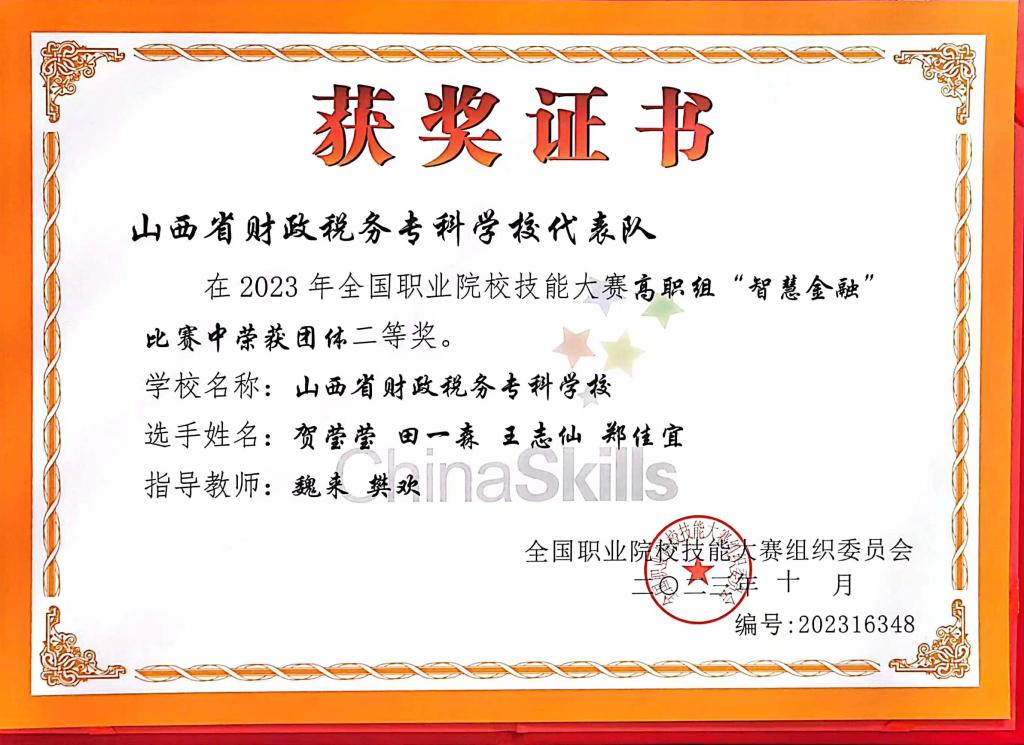 2023年全国职业院校技能大赛高职组“智慧金融”赛项于10月28日至29日在长春成功举办,来自全国的58支队伍232名选手参加了本次比赛。经过两天的激烈比拼,bat365金融学院魏来和樊欢指导的贺莹莹、田一森、王志仙、郑佳宜参赛团队荣获国赛二等奖。该荣誉创造了金融学院自bat365“双高”校建设以来在全国职业院校技能大赛比赛中的最好成绩,是金融学院不断探索专业改革和创新的重要成果。