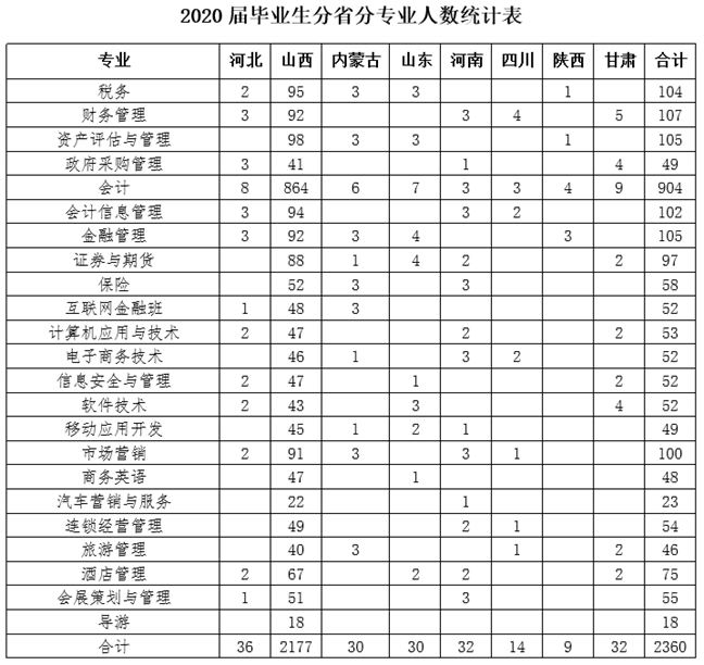 附件:2020届毕业生分省分专业统计表