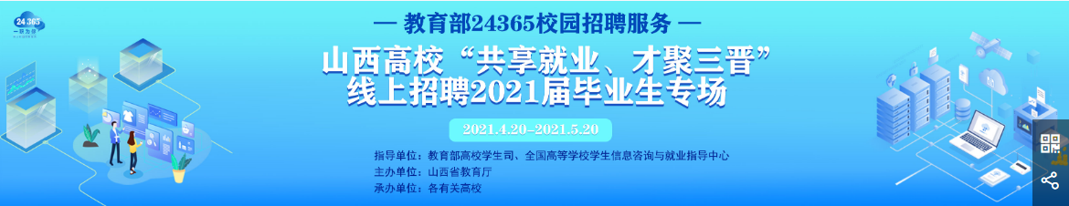 为落实教育部2021届全国普通高校毕业生就业创业工作网络视频会议精神,全方位服务山西省转型发展整体部署,经研究,山西省教育厅决定全面开展山西省2021届高校毕业生“共享就业”线上双选会系列活动。