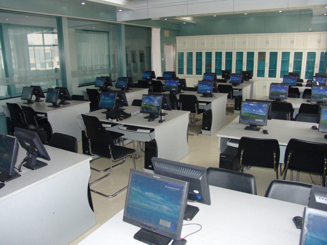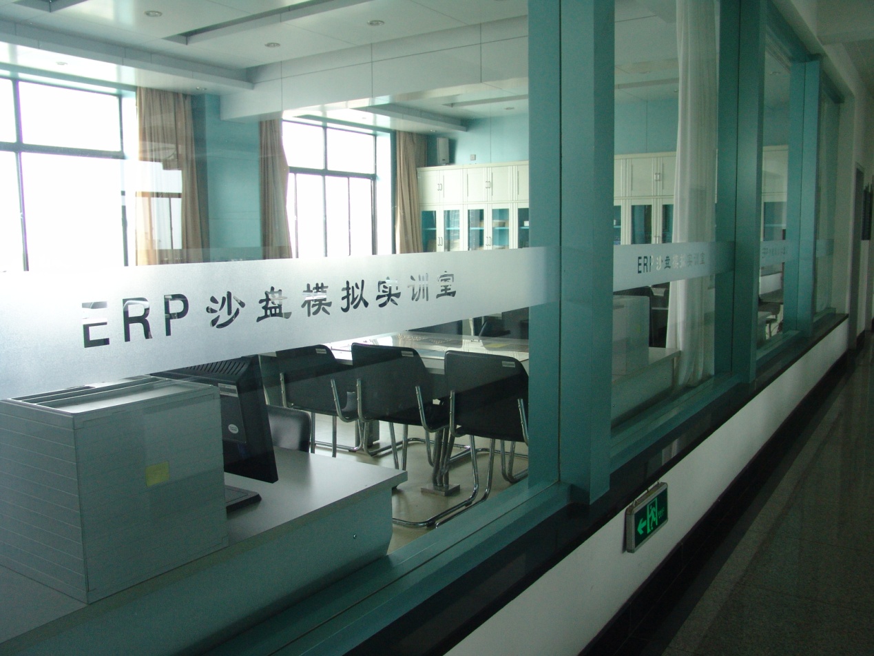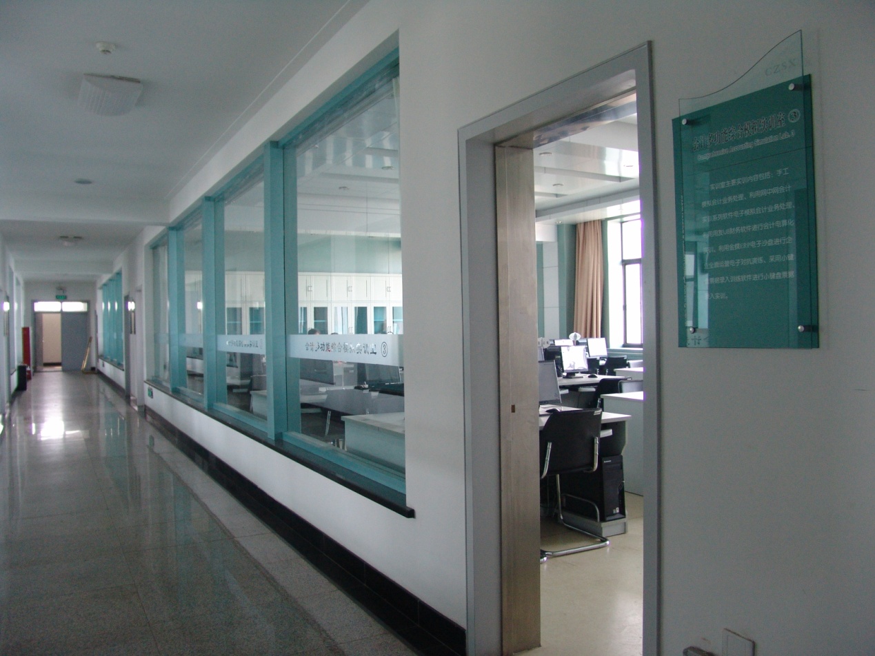 会计岗位实训室:基于网络环境下按岗位进行财会模拟的实训基地,实训室分设14个小组,每个小组为一个模拟财务室,由4名学生组成,分别担任会计主管、总账会计、成本会计、出纳四个岗位角色,采用用友U8管理系统,在局域网环境下相互配合,完成从建账等初始化、日常凭证处理、财务决策、账薄生成财务分析,会计数据综合利用,报表编制等一系列财务会计工作。