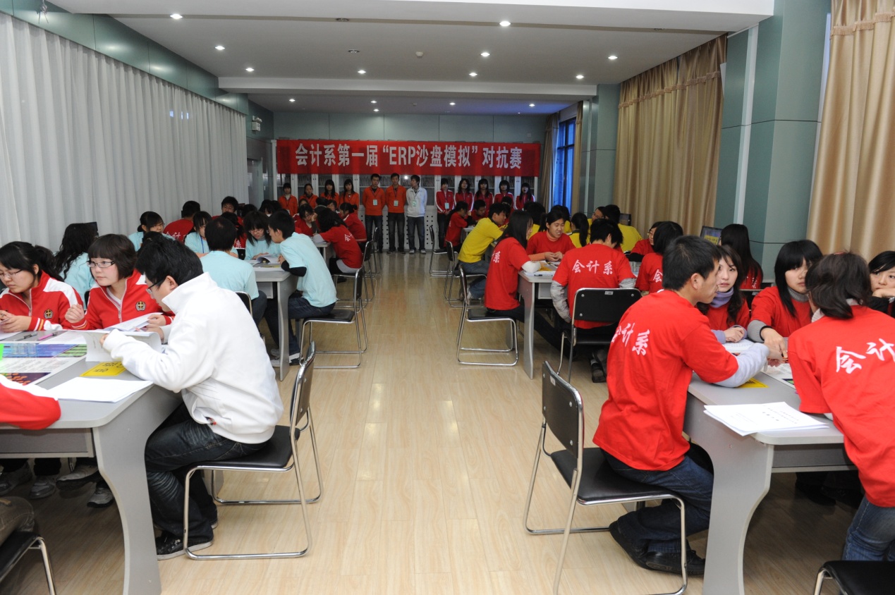bat365正版唯一官网会计实训基地为了加强培养能够从事成熟技术应用和运作、实践能力强、岗位工作适应性强的面向生产、建设、管理和服务一线的中等技术应用型人才而建立起来的,现在有多功能实训室4个,岗位实训室2个,会计文化示教馆1个,ERP沙盘模拟实训室2个,会计基本技能实训室1个。安装有用友U8、用友通财务软件,金蝶经营之道、创业之星电子沙盘、网中网会计实训系列软件,小键盘录入软件等系统,配合专业的凌波多媒体教学软件使用,在授课的同时示范性操作,使学生能够更快更好的理解并运用。在这里我们主要进行会计电算化实训、ERP沙盘模拟对抗实训、网中网会计10个模块的实训、会计点钞、捆抄、会计书写、凭证的装订、算盘以及小键盘录入等实训内容。