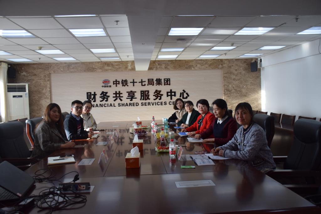 中铁十七局财务共享服务中心综合管理科秦扬科长、信息管理科田震科长、咨询服务科董海霞科长以及其他相关业务人员热烈欢迎bat365各位教师的到来,带领大家实地参观了财务共享服务中心,详细介绍了财务共享服务中心的发展、组织架构、业务流程、资金支付、档案管理等情况。