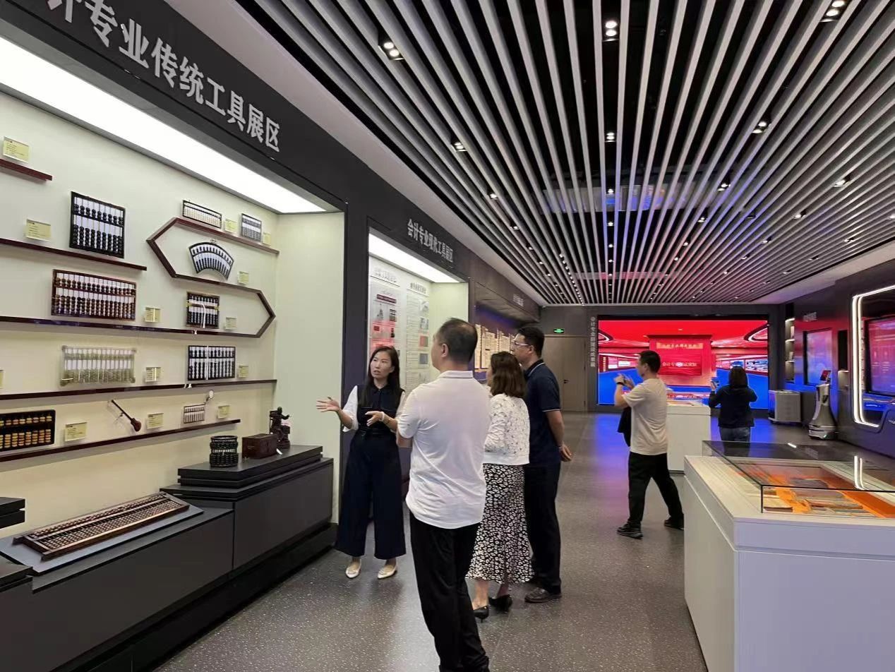 企业代表一行首先前往会计学院会计文化示教馆,由薛鹏飞介绍示教馆中陈列的各种算盘、算书等文化展品。随后,前往数智财会产教融合实践基地,由徐洁介绍基地云会计小镇、数字人技术应用等情况。参观人员感受到了学院历史文化底蕴之深厚,现代技术应用之先进,对学院的建设现状表示由衷赞赏。