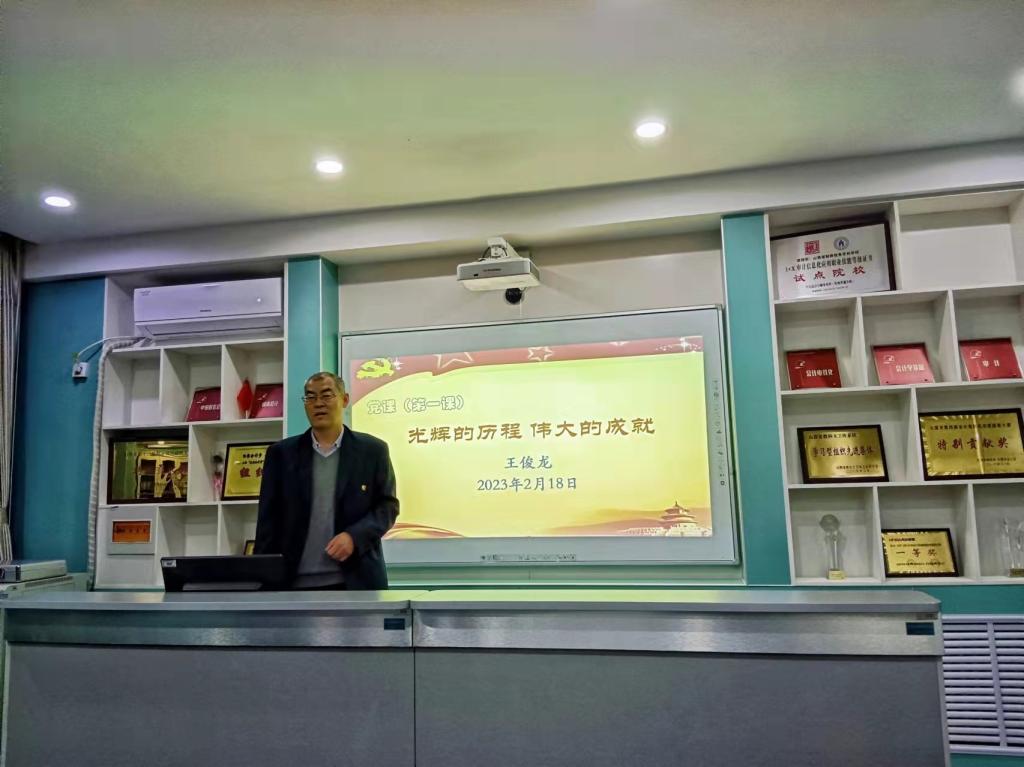 2023年2月18日, 会计学院励志会计专业协会“敬德学堂”在一号教学楼 508教室开展第三十讲。为使同学们深刻认识到我们党发展之初的艰难和星星之火可以燎原的强大生命力,我院党总支书记王俊龙为同学们讲授了《光辉的历程 伟大的成就》。