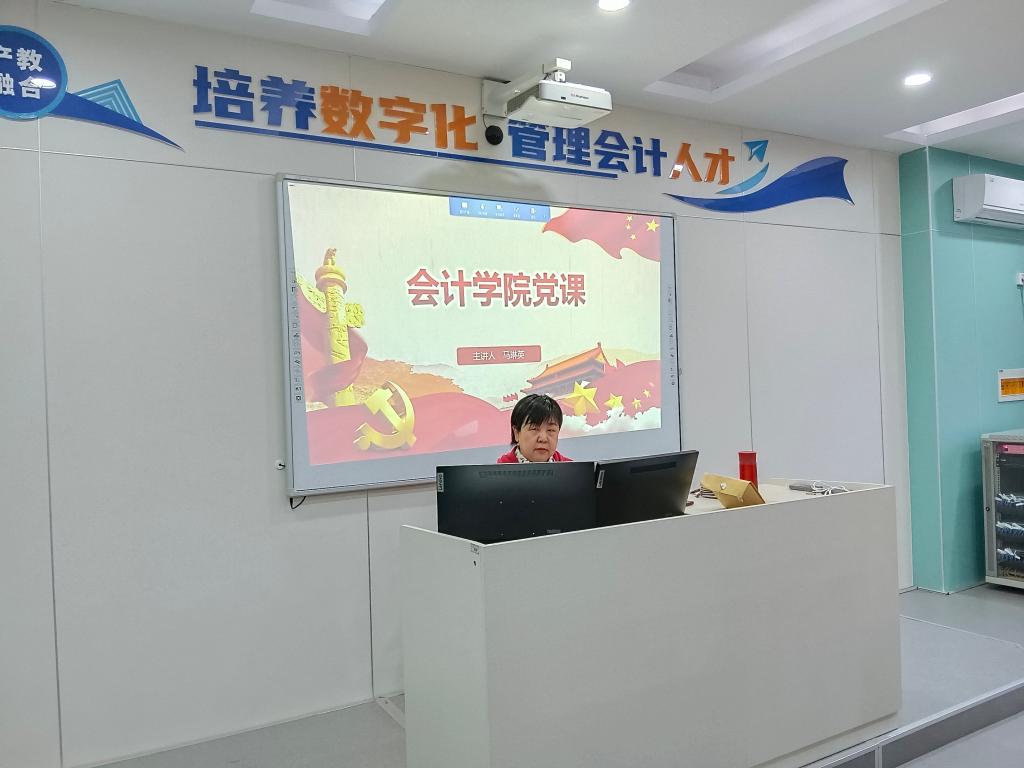2023年4月15日,会计学院励志会计专业协会“敬德学堂”在一号教学楼509教室开展第三十八讲。我院教师党支部马琳英老师为同学们讲授以弘扬伟大建党精神为主题的《会计学院党课》。