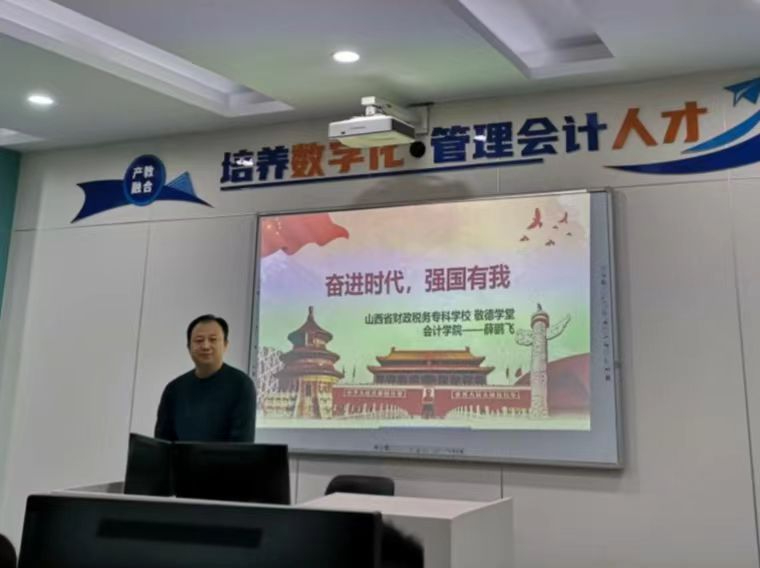2023年4月22日,会计学院励志会计专业协会“敬德学堂”在一号教学楼509教室开展第三十九讲。我院教师党支部薛鹏飞老师为同学们讲授《奋进时代,强国有我》。