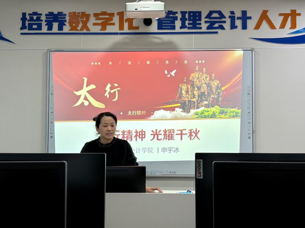2023年12月2日,会计学院励志会计专业协会“敬德学堂”在一号教学楼509教室开展第四十七讲,我院党支部教师申宇冰老师为同学们讲授《太行精神 光耀千秋》。