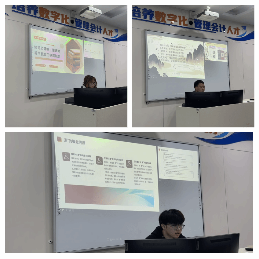 2025年3月18日,会计学院励志会计专业协会“敬德学堂”在一号教学楼509教室开展了第七十四讲。敬德学堂全体成员共51人参加了本次课程,本期主题为《四书五经》。此次课程由刘思彤、刘全义和张旭东同学和大家分享自己对“修道之谓教”以及“道的阐释”以及“慎独之道”的见解。