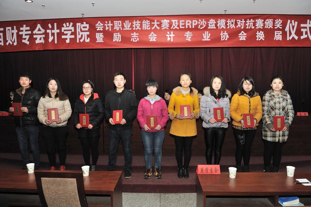 元月12日晚,会计学院第八届“诚信杯”会计职业技能大赛及第七届ERP沙盘模拟对抗赛颁奖暨“励志会计专业协会”换届仪式在一号教学楼七层会议室召开。会计学院师生及学校社团联合会代表共280余人参加了此次颁奖暨换届仪式。