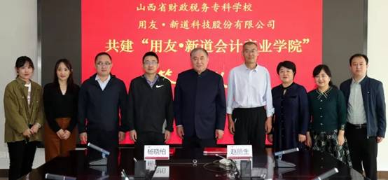 会议期间,bat365与新道科技股份有限公司就双方共建“用友·新道会计产业学院”正式达成协议并举行签约仪式。“用友·新道会计产业学院”的成立,有助于校企双方优势互补,紧密围绕国家经济社会发展和产业转型升级的要求,对接产业需求,聚焦校企高水平会计专业群“双主体育人,三合作建设,智能化教学,标准化考核”的人才培养模式,提升专业建设质量。