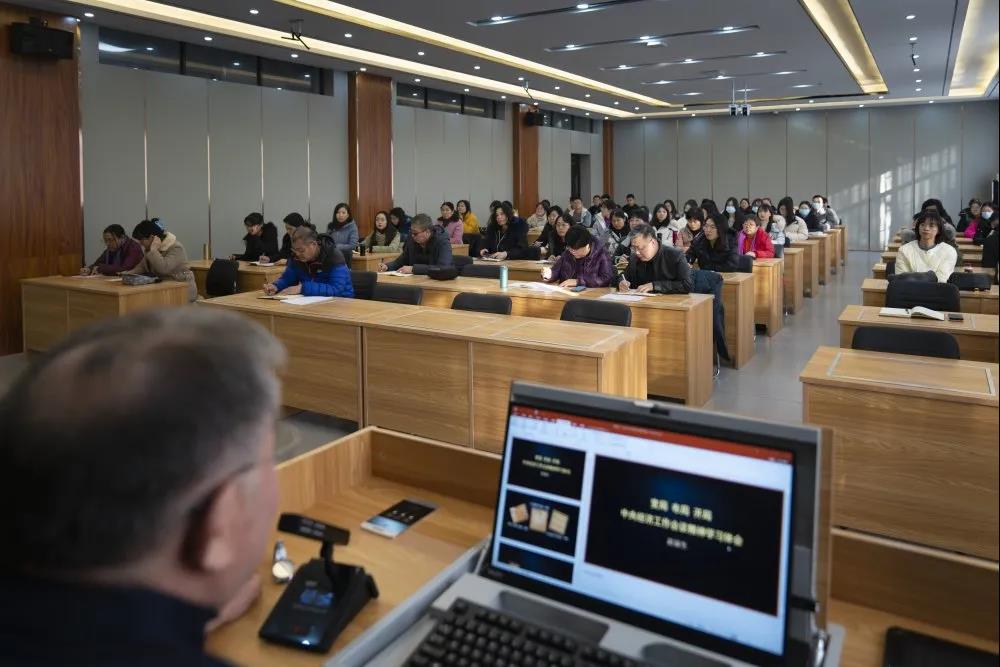 12月22日下午,赵丽生校长以《变局 布局 开局—中央经济工作会议精神学习》为题,为会计学院教职工上了一堂站位高、目标远、情怀深的形势政策课,为学生上了一堂主题鲜明、寓意深远、启迪深刻的思想政治课。