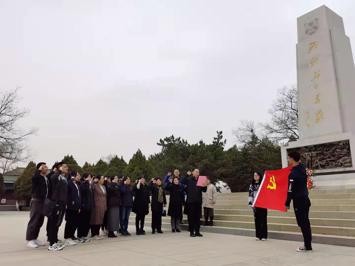 在革命烈士纪念碑前,全体党员怀着对革命先烈的崇敬之情,瞻仰革命烈士纪念碑,缅怀革命先烈的丰功伟绩。全体党员面向党旗,举起右手,重温入党誓词,立下对党忠诚的誓言。