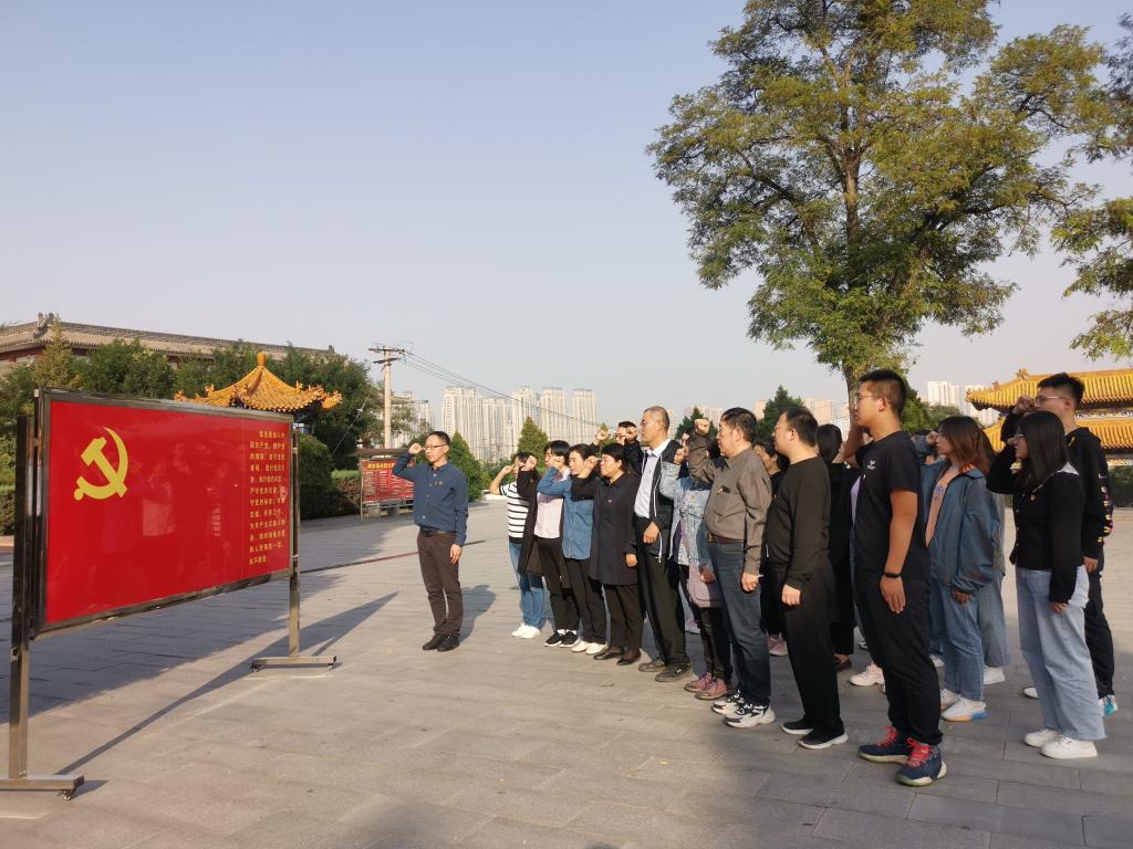 在烈士陵园纪念广场,大家怀着无比崇敬的心情在烈士纪念碑前列队肃立,集体向烈士纪念碑行鞠躬礼,为长眠在陵园内的革命先烈默哀一分钟,并献上花圈。全体党员为烈士敬献鲜花,表达对英烈的深切缅怀。随后,全体党员面向鲜红的党旗,高举右拳,重温入党誓词,坚定入党初心。