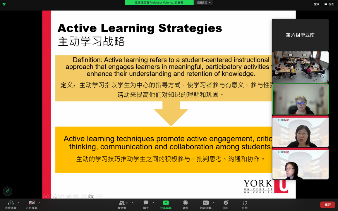 “通过培训,让我们了解了不同文化背景下教学理念、教学模式和教学方法的不同,开拓了自身在教学领域的国际化视野,也有针对性地学习了加拿大约克大学一些先进的教学方法:如何设计先进的课程体系、科学地进行学习成果评价、教与学以研究为基础的八条原则等等。”会计学院教师胡珊表示,“这些内容能够有效地提升我们青年教师在教、学、评方面的能力,重新审视在教学活动中“教”与“学”的关系,认清学生在教学中的主体地位。”