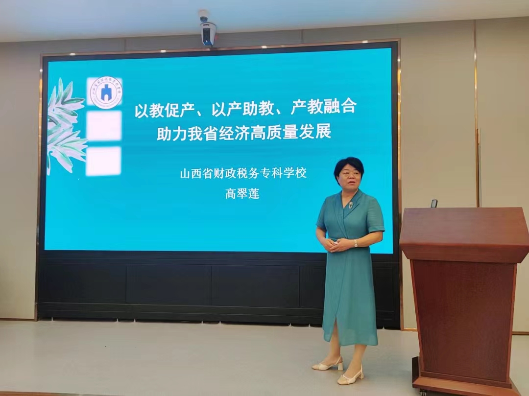 会计学院院长高翠莲作了“以教促产、以产助教、产教融合助力我省经济高质量发展”的主题发言。她主要从“职业教育发展现状、会计职业变革趋势、国家职教改革政策、产教联合发展思路”四个方面展开详细论述,突出强调要通过建设产教联合体,不断深化校企合作,促进职普融通、产教融合、科教融汇,为地方经济发展贡献力量。