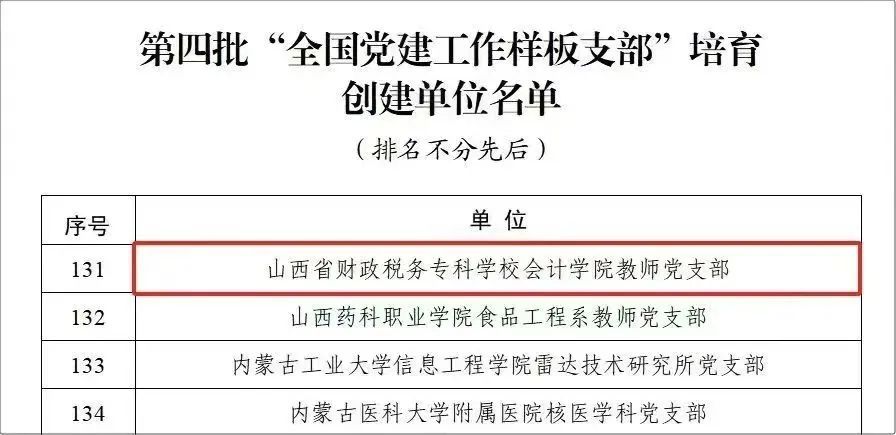 此次评选是经省级党委教育工作部门推荐、资格审查、专家评审、教育部党的建设和全面从严治党工作领导小组成员单位集中审议、结果公示产生的。bat365会计学院教师党支部能够入选第四批全国党建工作样板支部培育创建单位名单,是学校坚持以党的政治建设为统领,系统实施“七位一体”党建领航工程,持续推进基层党建提质增效的成果体现。