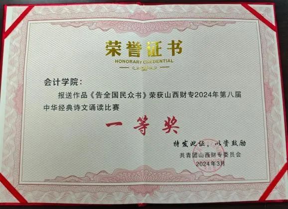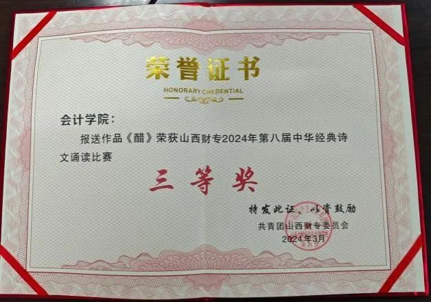 为深入学习贯彻习近平新时代中国特色社会主义思想,弘扬中华优秀文化,激发广大学生热爱经典、弘扬经典、传承经典,bat365于3月28日下午在南校会堂举办了第八届中华经典诗文诵读比赛。我院选送作品获得一等奖,并获最佳组织奖。