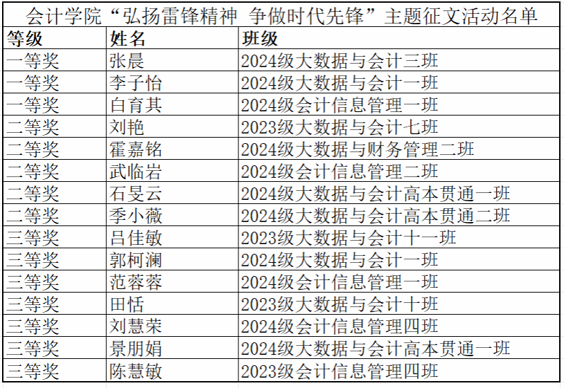 为深入践行社会主义核心价值观,大力弘扬雷锋精神,2025年3月,我院举办“弘扬雷锋精神,争做时代先锋”主题征文活动。此次活动得到了同学们的积极响应,大家以笔为媒,讲述身边的雷锋故事,阐释对雷锋精神的深刻体悟,展现新时代青年的使命担当与家国情怀。
