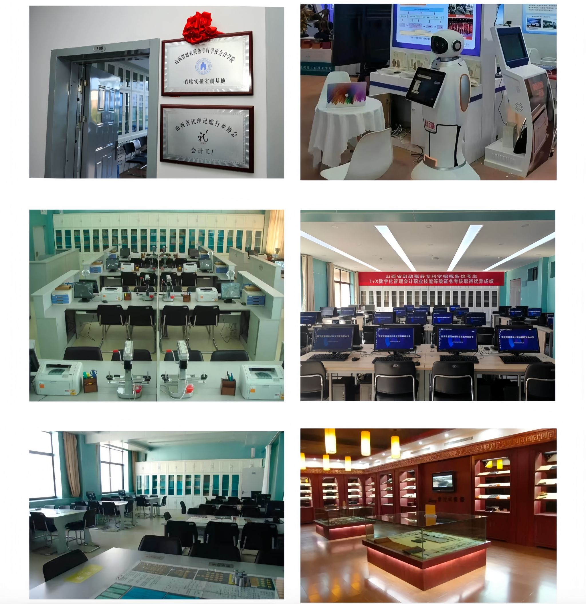 2017年5月,会计学院与山西省代理记账行业协会合作建设了校内生产性实训基地——真账实操会计工厂,由企业投资30余万元,配备了56台商务笔记本电脑、8台扫描仪及先进装订设备等,学校配置了先进的投影设备、电子显示屏等,引入3000多家中小微企业真实业务,采用先进的云财务平台,可满足专业群所有学生轮流进入会计工厂进行真账实操、报税纳税等真实业务处理。