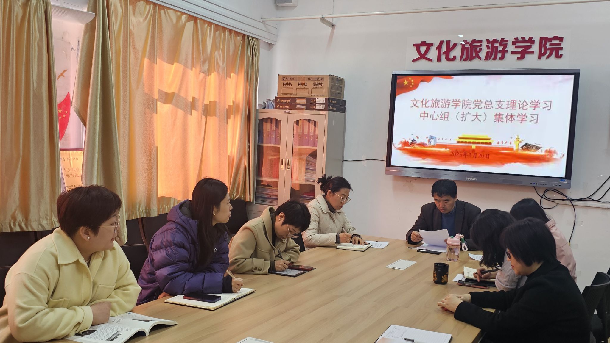 3月20日下午,文化旅游学院党总支理论学习中心组在学院320会议室召开集体学习会。学院党总支理论学习中心组成员及各教研室主任参加学习,会议由党总支书记张卫主持。