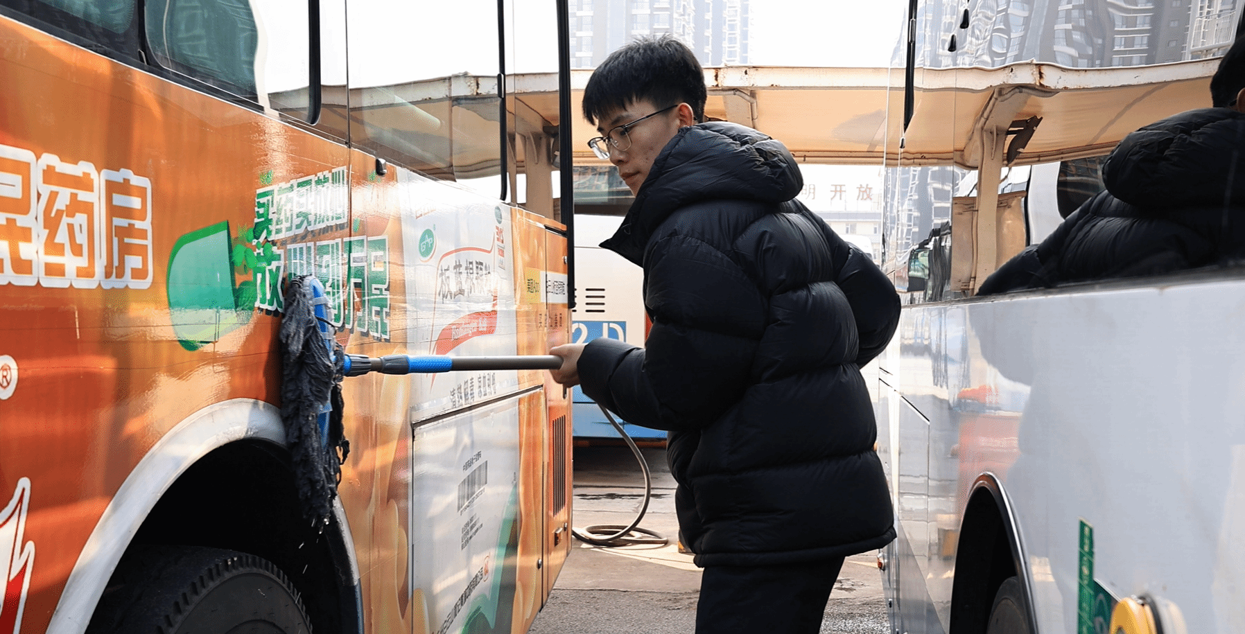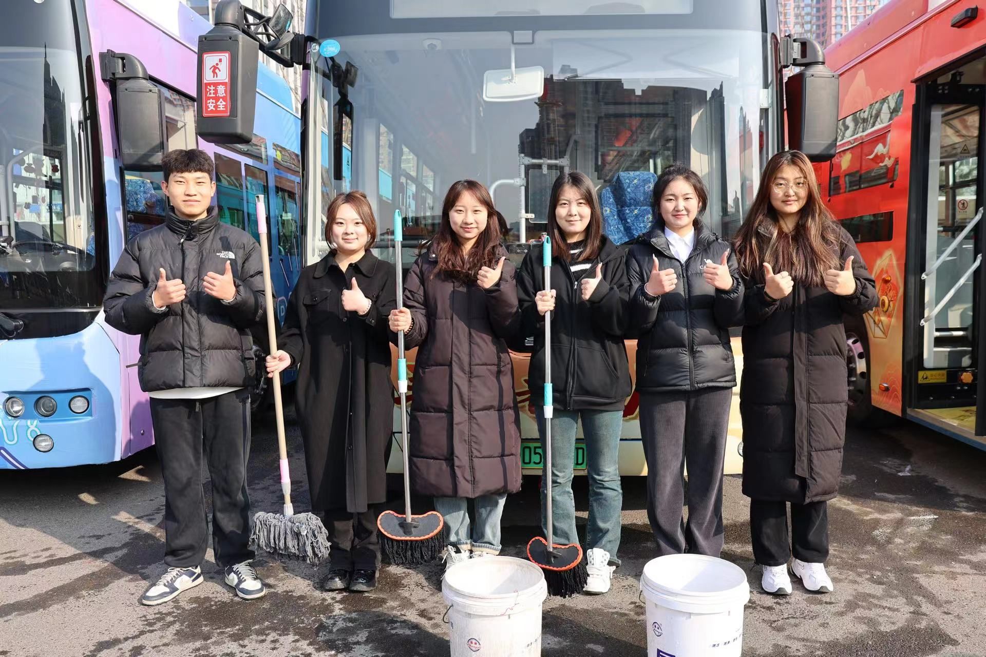 在公交一公司,党总支书记孙师傅向大家的到来表示感谢,详细介绍了清洗车辆的要求和注意事项。随后,大家纷纷拿起清洁工具积极投入到紧张的劳动之中。擦车体、洗轮胎、扫车厢,同学们在劳动实践中历练身心、在奉献中收获快乐,在学雷锋志愿服务中真切感受到雷锋精神的蓬勃生命力。