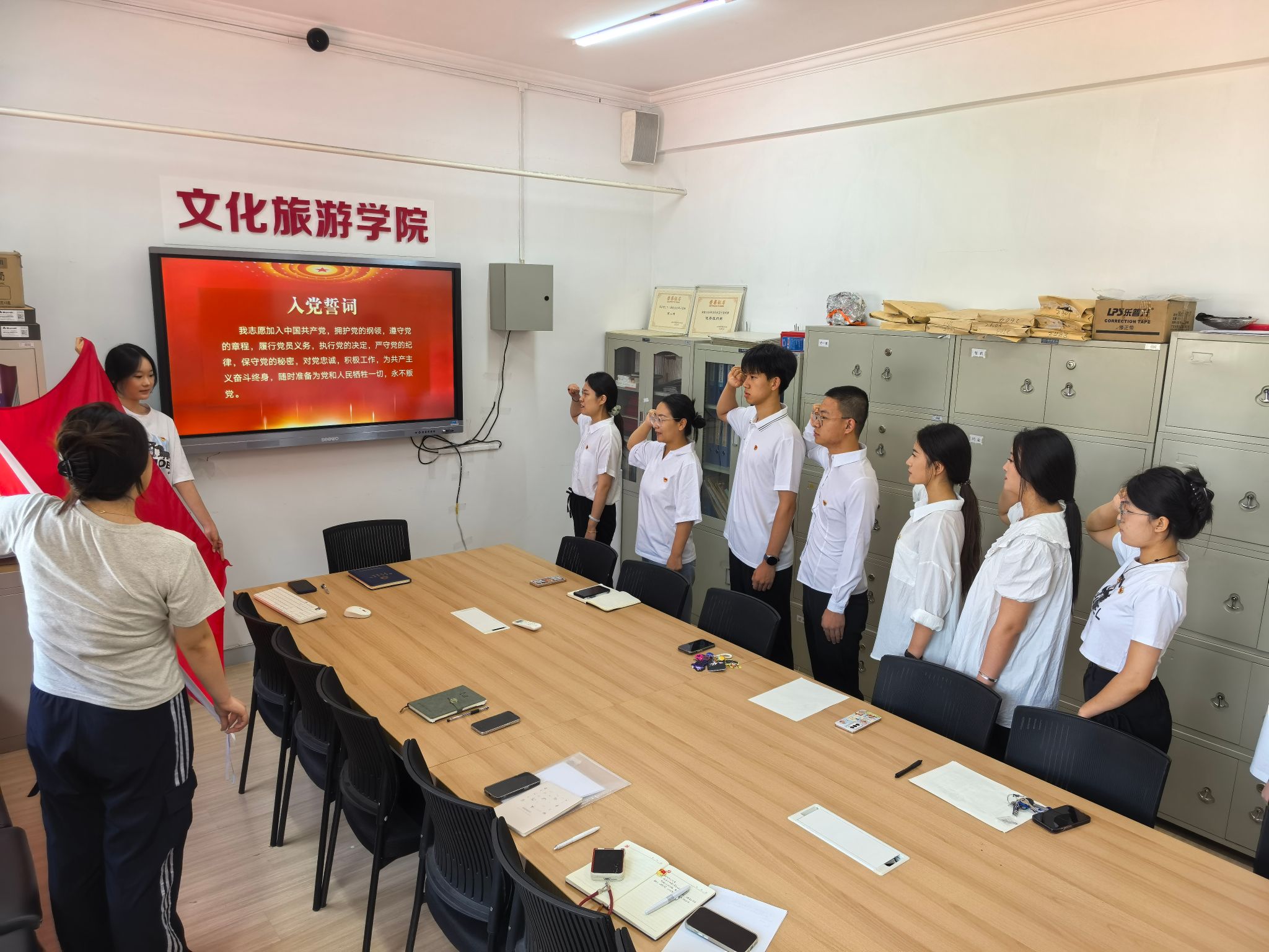 7月1日,文化旅游学院学生党支部在320会议室开展了新党员入党宣誓仪式暨2025届毕业生党员座谈会主题党日活动。学院党总支书记张卫及支部全体党员同志参加活动。
