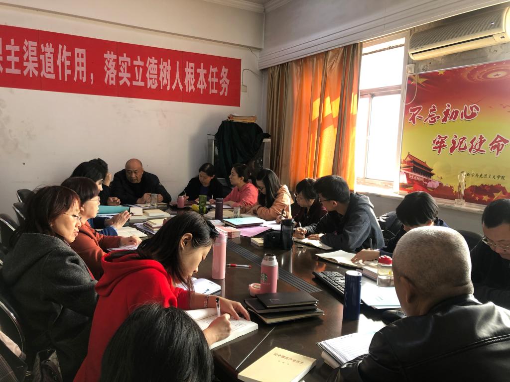 会上,王院长就党史学习教育进行了工作安排。一是扎实抓好专题学习。通过多种形式原原本本学习指定学习材料,及时跟进学习习近平总书记最新重要讲话精神。二是牢牢抓好政治引领。要发挥好课程教材的主渠道作用、思政工作的主阵地作用、网络空间的主平台作用和研学实践的大课堂作用,把党史学习教育、“四史”专题教育认真开展好。三是引导党员立足本职为群众办实事、办好事,让师生群众感受到学习教育带来的新变化、新气象。 四是通过学校智慧教室开展线上党史教育“开学第一课”和线下“形势与政策”课堂相结合的方式将党史教育宣传好、落实好。