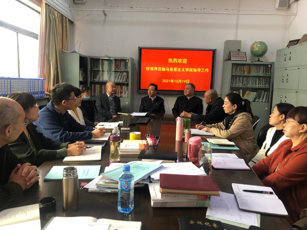 10月19日下午,党委书记王新淮、校长赵丽生、党委副书记杨晓明、宣传部长郭艳萍深入马克思主义学院检查指导思想政治理论课建设工作。