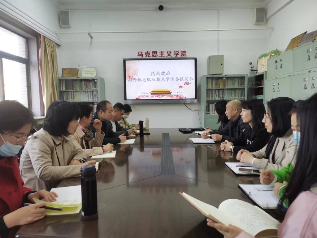 3月8日上午,山西机电职业技术学院思政部主任韩先虎带领思政课教师来bat365马克思主义学院进行参观学习。bat365马克思主义学院院长王恩成、副院长杨佳佳及教研室主任到会,并进行工作交流。