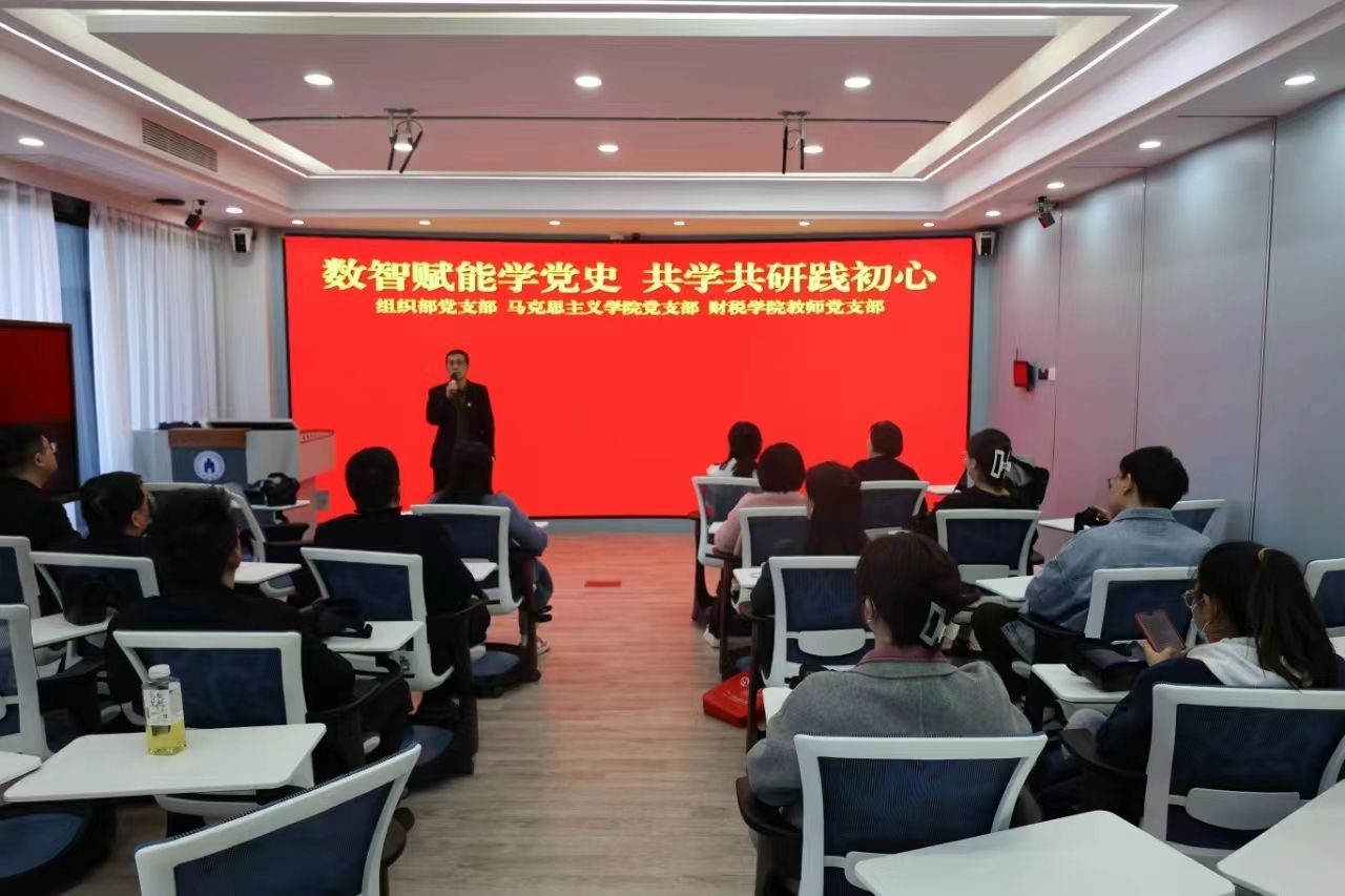 为增强党史学习教育的吸引力和感染力,让党史学习教育更具数字化、智能化,3月22日,组织部党支部、马克思主义学院党支部与财税学院教师党支部室联合开展了“数智赋能学党史 共学共研践初心”主题党日活动。教学党总支书记高建、马克思主义学院行政负责人陈彪、财税学院党总支书记张希、组织部副部长刘军和部分党员教师参加了此次活动。